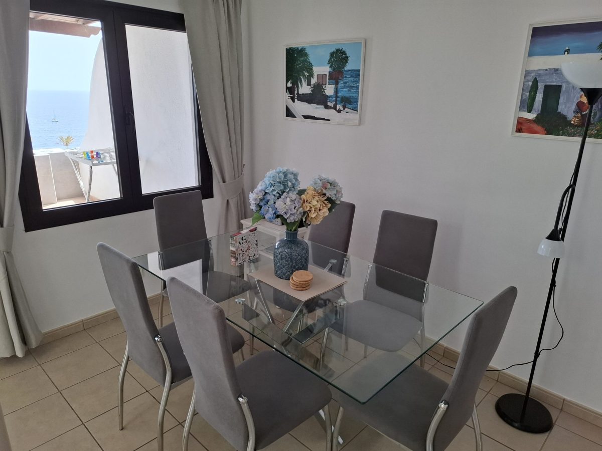 Dining area with dining table for six