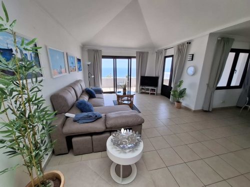 Open plan lounge with large comfortable corner sofa and occasional tables