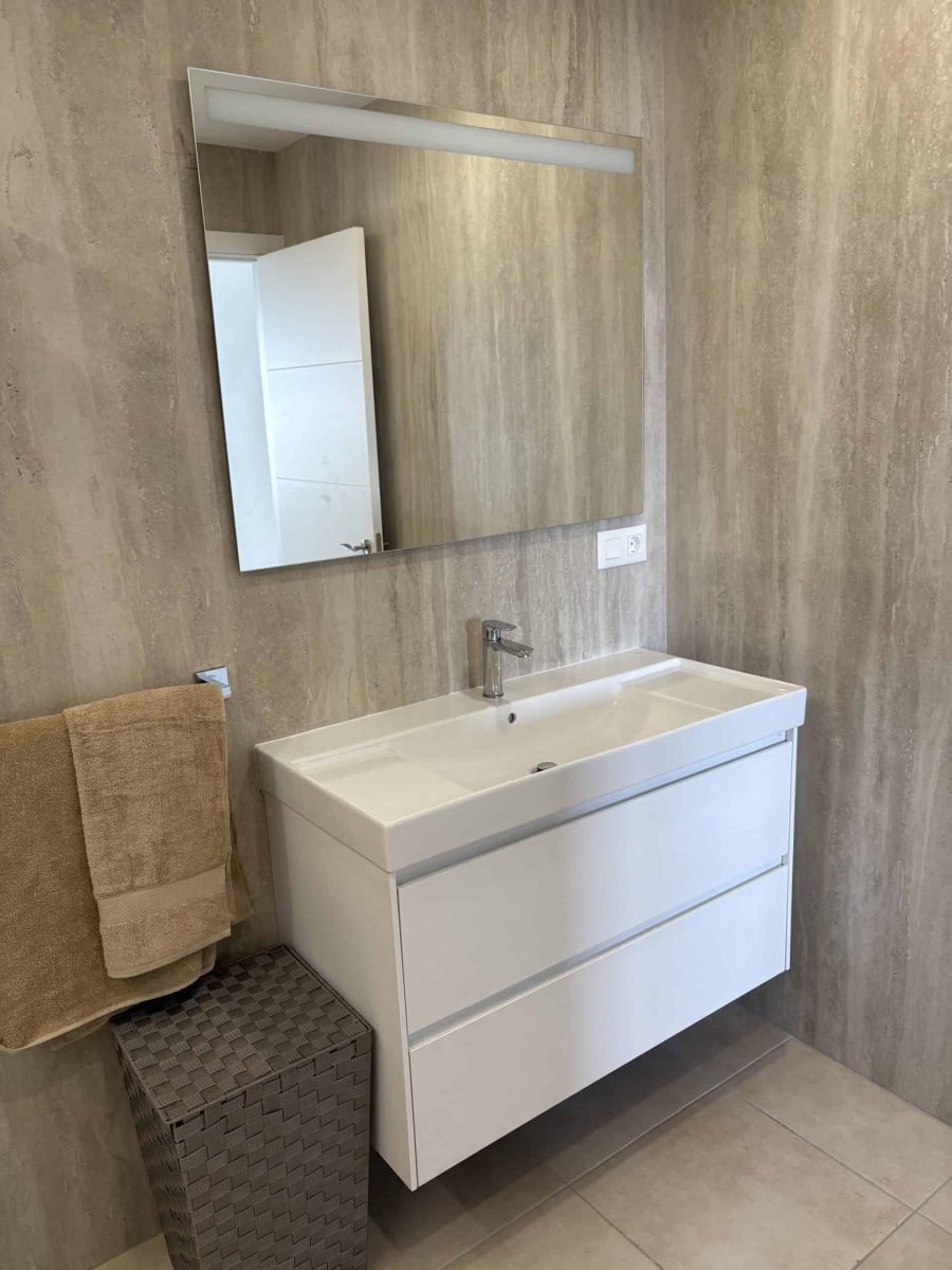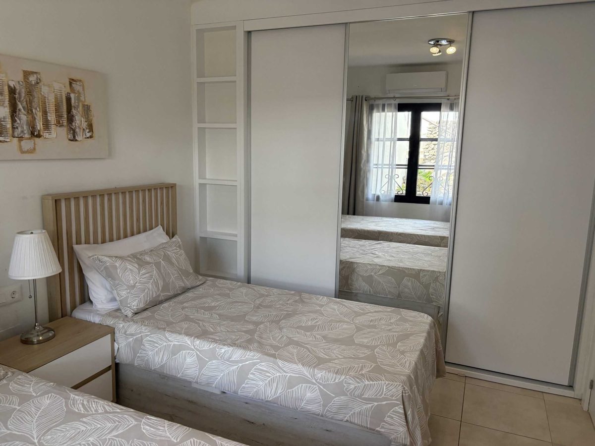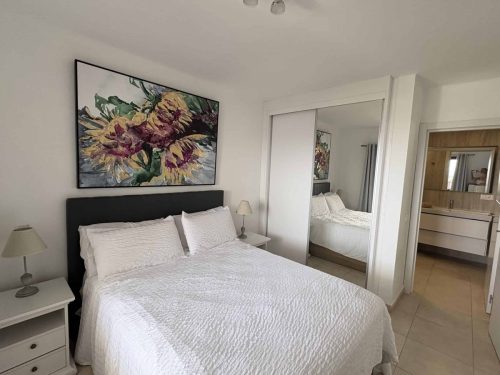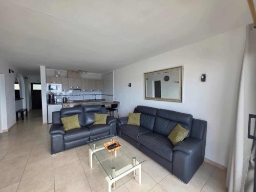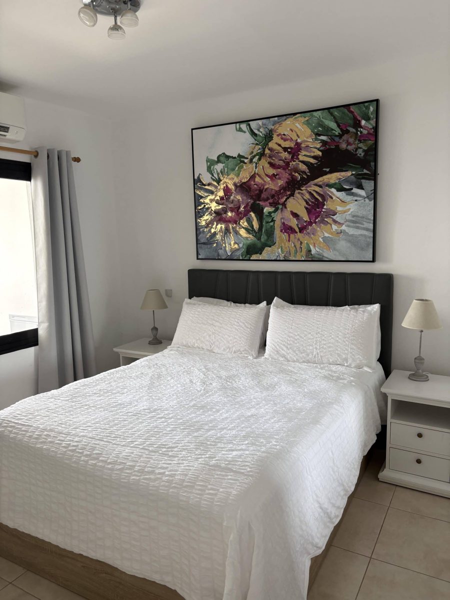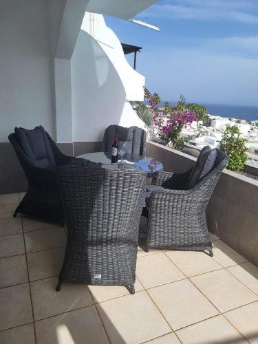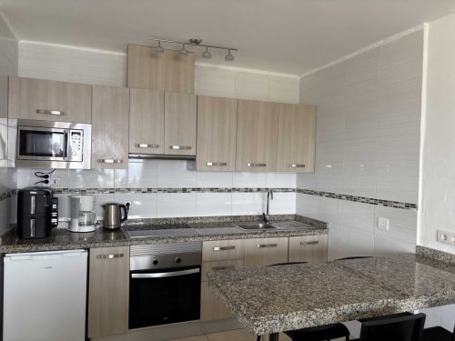 The best bit of the apartment for us was the balcony which was large, well furnished and with a view of sea and pool. It had sun and shade throughout the day. The pool area was great too – not all apartments have a cafe/bar and reception but Largoverde does and that was fabulous. John was a responsive host and he and Andrew at reception were both helpful. The location – above the harbour – might be too much of a climb for some, but meant it was quiet with a great view. The kitchen was well equipped.